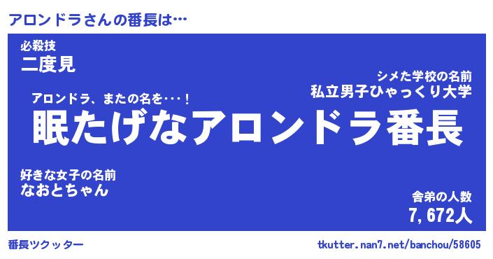 | ヘコむあだ名 | 『アロふぇ~』『つくし』『アロ太郎』 |