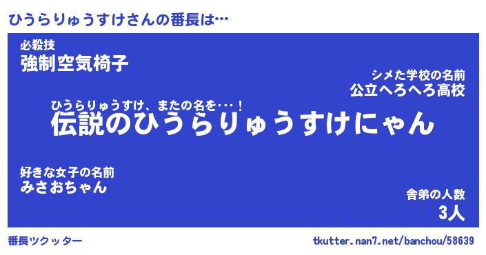 | 伝説のあだ名 | 『伝説のスナイパーひうらりゅうすけ』 |