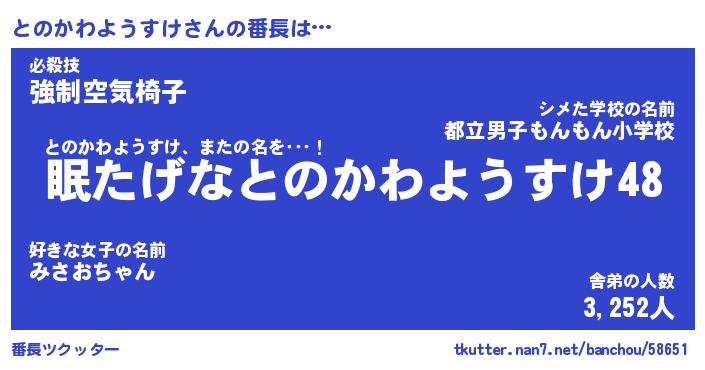 | 伝説のあだ名 | 『封印されしスナイパーとのかわようすけ』 |