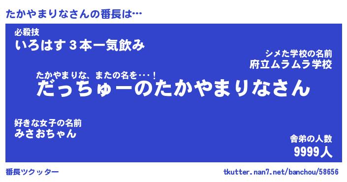 | 伝説のあだ名 | 『伝説のスナイパーたかやまりな』 |