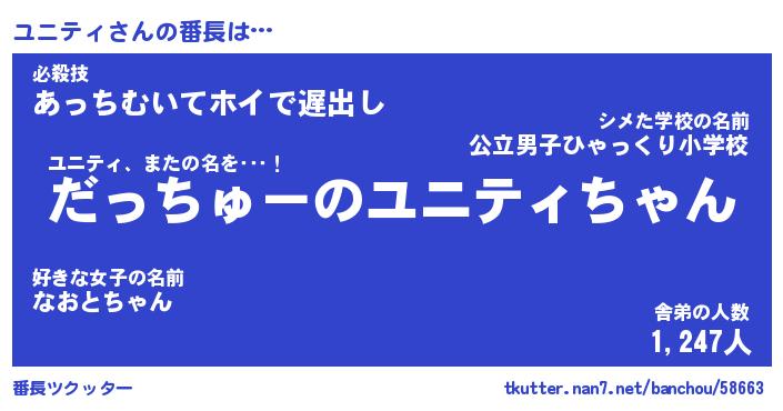 | ヒーロー風カッコイイあだ名 | 『スーパーユニティ』『銀牙騎士ユニ』 |