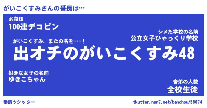 | ヘコむあだ名 | 『がいもー』『なまこ酢』『がいを』 |