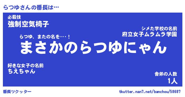 | ファンタジー風あだ名 | 『ラツフェル』『エターナルラツユー』 |