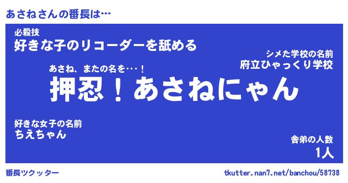 | ポケモン風あだ名 | 『アサチュウ』『アサネダネ』 |