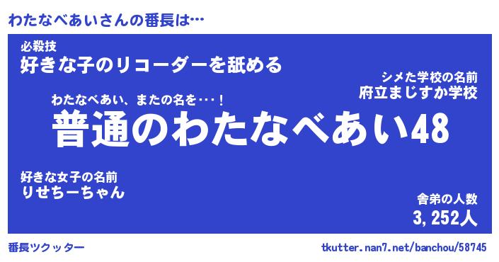 | ヒーロー風カッコイイあだ名 | 『スーパーワタナベアイ』『幻影騎士ワタ』 |