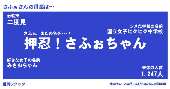 | 意味不明あだ名 | 『ペロリンさふぉ』『さふぉフォーエバー』 |
