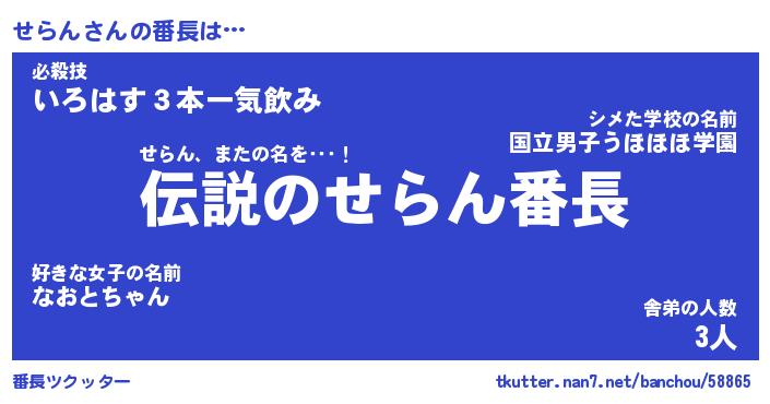 | 伝説のあだ名 | 『伝説のスナイパーせらん』 |