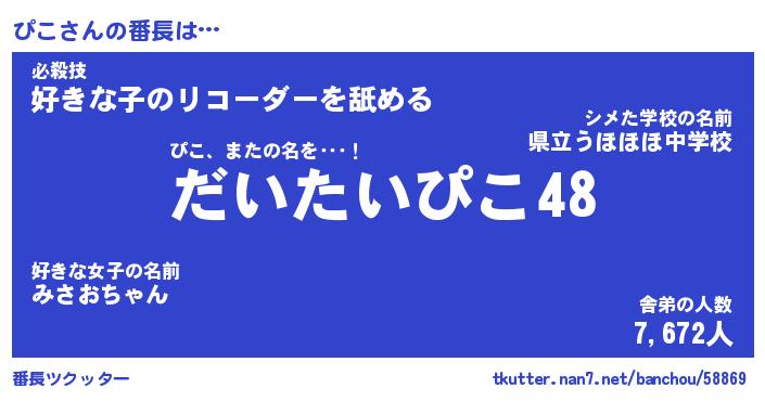 | ヘコむあだ名 | 『ぴこふぇ~』『豆乳』『ぴこお』 |