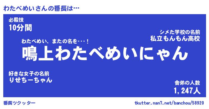| 意味不明あだ名 | 『ペロリンわたべめい』 |