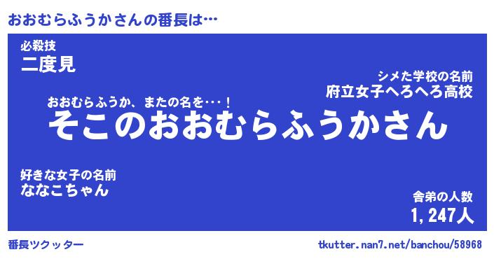 | ヒーロー風カッコイイあだ名 | 『スーパーオオムラフウカ』 |