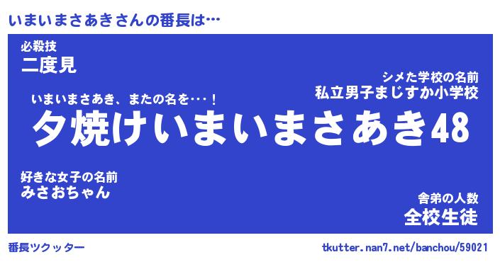 | 恥ずかしいあだ名 | 『プリティーいまいまさあき』『いまちん』 |