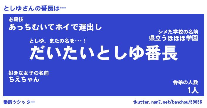 | ヒーロー風カッコイイあだ名 | 『スーパートシユ』『ウルトラとしゆマン』 |