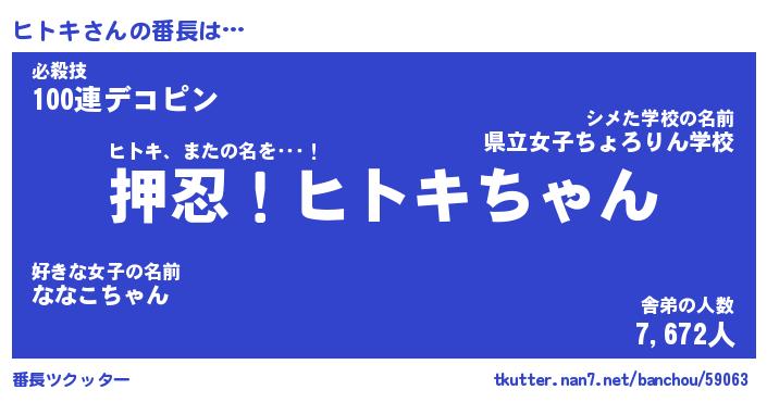 | ヒーロー風カッコイイあだ名 | 『スーパーヒトキ』『ウルトラヒトキマン』 |