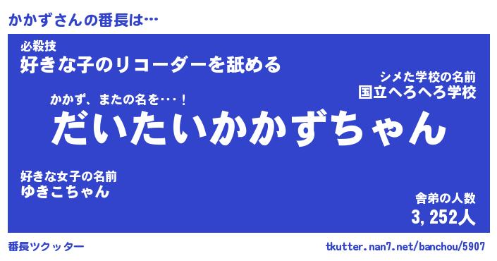 | 意味不明あだ名 | 『ペロリンかかず』『かかずフォーエバー』 |