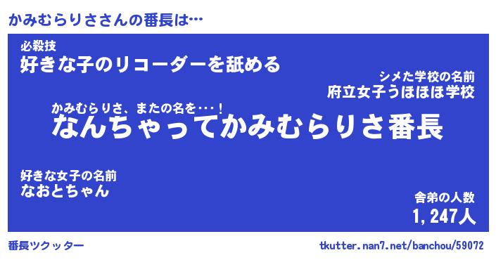 | 伝説のあだ名 | 『伝説のスナイパーかみむらりさ』 |