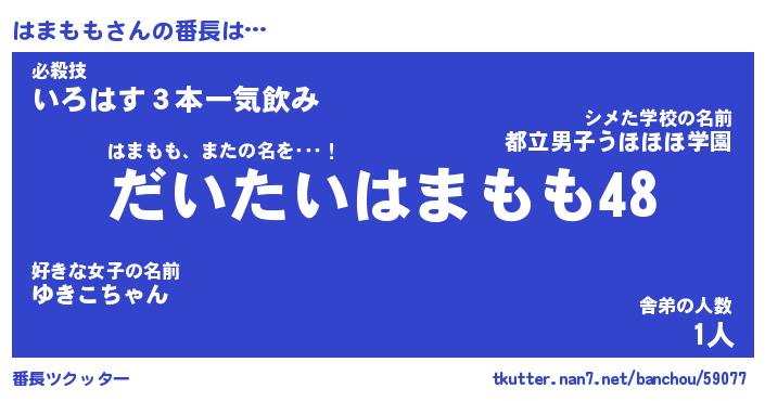 | 意味不明あだ名 | 『ペロリンはまもも』『永久保存はまもも』 |