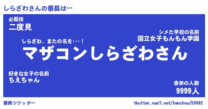 | 意味不明あだ名 | 『ペロリンしらざわ』『永久保存しらざわ』 |