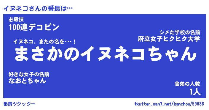 | ヘコむあだ名 | 『イヌにゅー』『つくし』『イヌっ子』 |