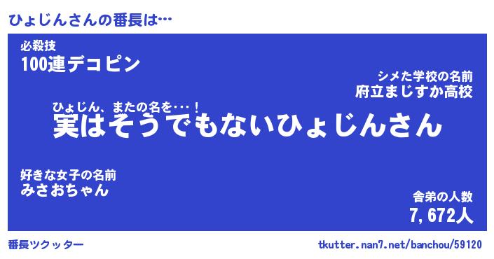 | 意味不明あだ名 | 『ペロリンひょじん』『永久保存ひょじん』 |