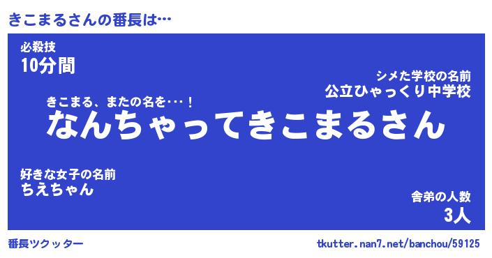 | ヒーロー風カッコイイあだ名 | 『スーパーキコマル』『魔戒騎士キコ』 |