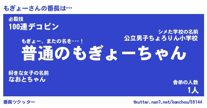 | 意味不明あだ名 | 『ペロリンもぎょー』『永久保存もぎょー』 |