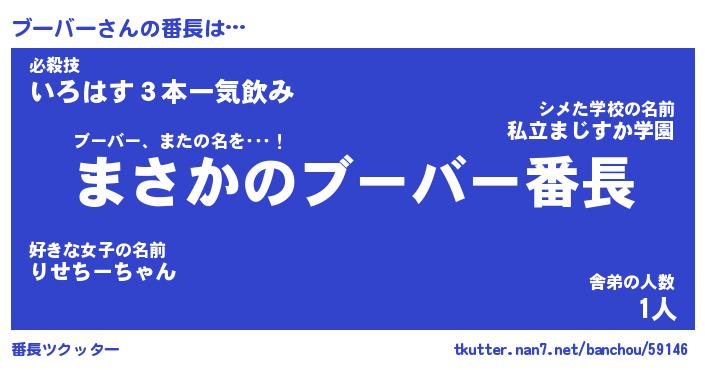 | 意味不明あだ名 | 『ペロリンブーバー』『永久保存ブーバー』 |