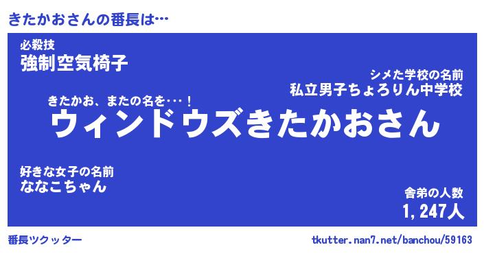 | 意味不明あだ名 | 『ペロリンきたかお』『永久保存きたかお』 |
