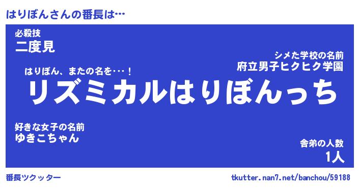 | 男性向けラノベタイトル風あだ名 | 『はりぼんの憂鬱』 |