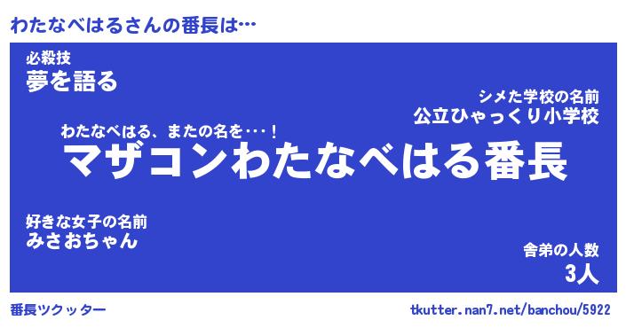 | ヒーロー風カッコイイあだ名 | 『スーパーワタナベハル』『魔戒騎士ワタ』 |