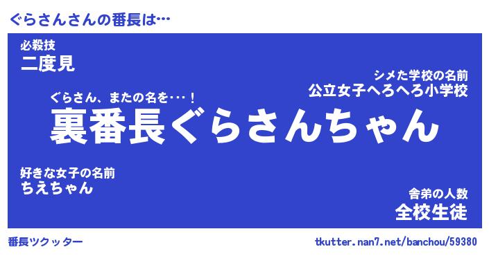 | 欧米人風あだ名 | 『マイケルぐらさん』『ウサインぐらさん』 |