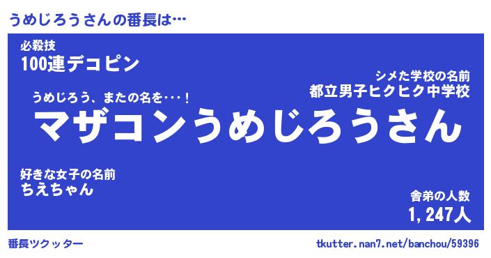 | ヒーロー風カッコイイあだ名 | 『スーパーウメジロウ』『銀牙騎士ウメ』 |