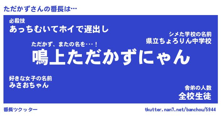 | ファンタジー風あだ名 | 『タダフェル』『エターナルタダカズー』 |
