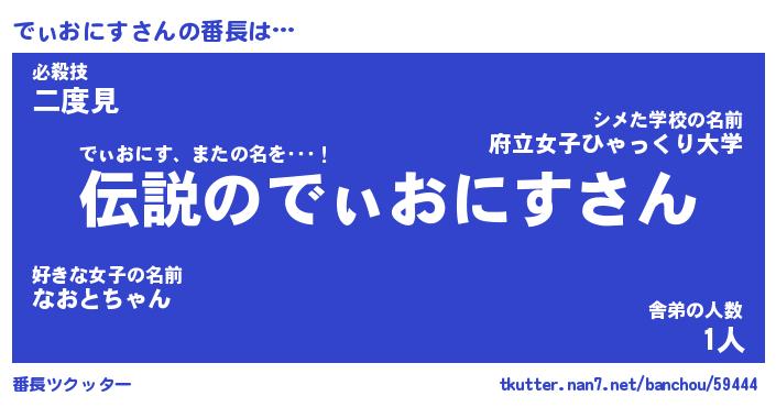 | 肩書あだ名 | 『でぃおにす御曹司』『でぃおにす大統領』 |