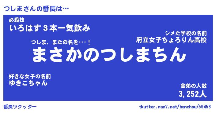 | ヒーロー風カッコイイあだ名 | 『スーパーツシマ』『ウルトラつしまマン』 |