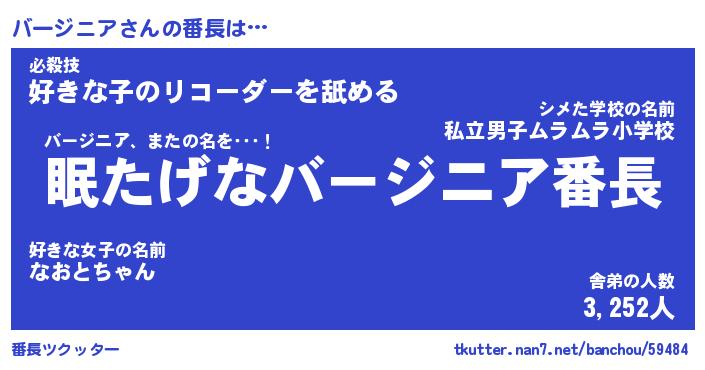 | ヒーロー風カッコイイあだ名 | 『スーパーバージニア』『炎刃騎士バー』 |