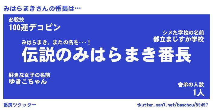 | 伝説のあだ名 | 『伝説のスナイパーみはらまき』 |