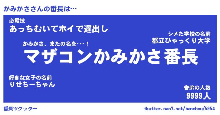 | 伝説のあだ名 | 『封印されしスナイパーかみかさ』 |