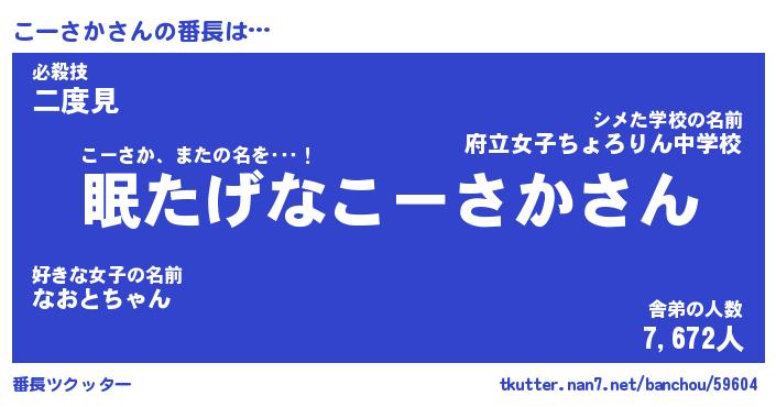 | 猫の名前『こーさかーにゃん』性別『雌』 |