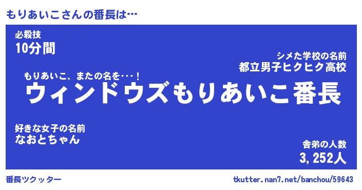 | 肩書あだ名 | 『もりあいこ社長』『もりあいこ大統領』 |