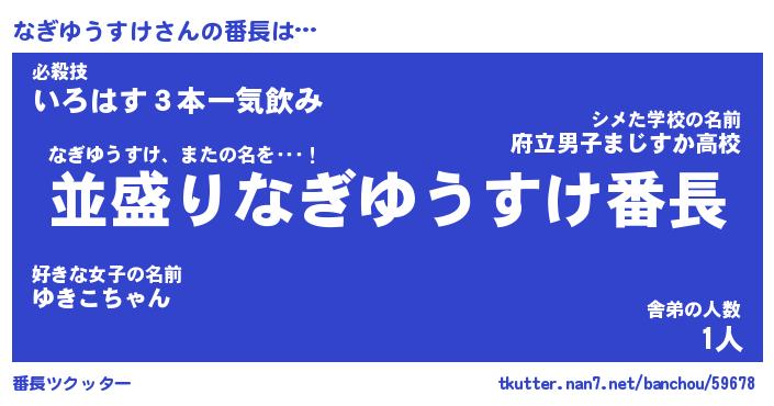 | 肩書あだ名 | 『なぎゆうすけ社長』『なぎゆうすけ団長』 |