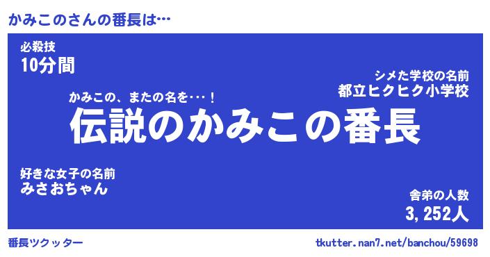 | 伝説のあだ名 | 『伝説のスナイパーかみこの』 |