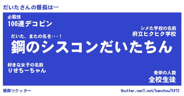 | ヘコむあだ名 | 『だいふぇ~』『なまこ酢』『だいお』 |