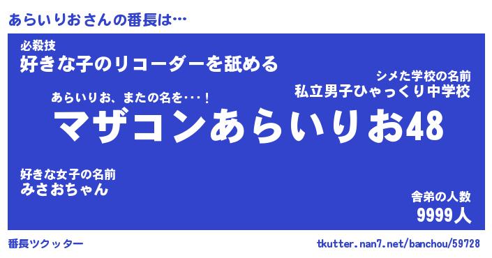 | 肩書あだ名 | 『あらいりお社長』『あらいりお大統領』 |