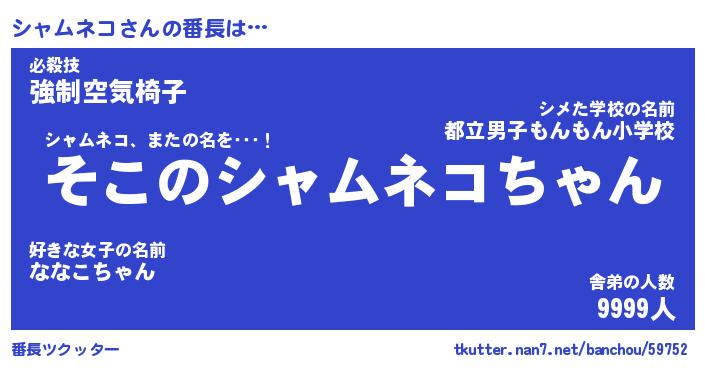 | ヒーロー風カッコイイあだ名 | 『スーパーシャムネコ』『天弓騎士シャ』 |