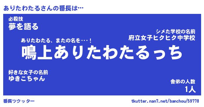 | 肩書あだ名 | 『ありたわたるCEO』『ありたわたる大統領』 |