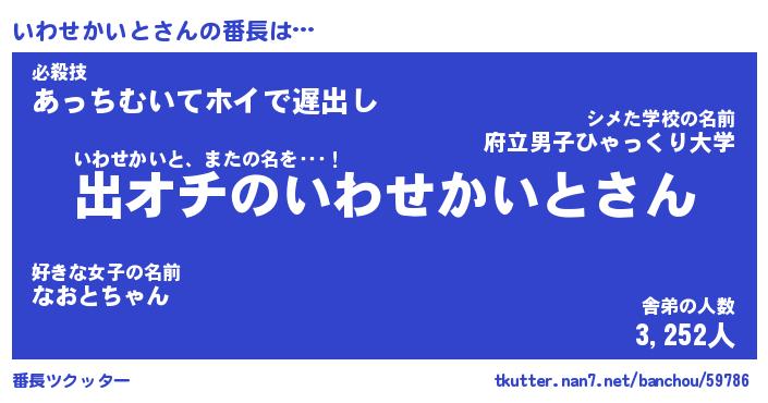 | 肩書あだ名 | 『いわせかいと社長』『いわせかいと塾長』 |