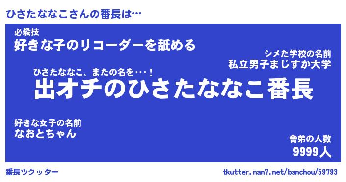 | ヒーロー風カッコイイあだ名 | 『スーパーヒサタナナコ』『幻影騎士ヒサ』 |