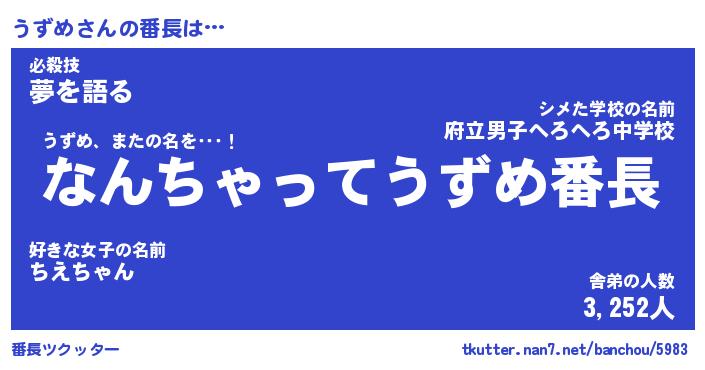 | ファンタジー風あだ名 | 『ウズフェル』『エターナルウズメー』 |