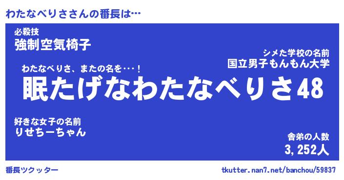 | ポケモン風あだ名 | 『ワタチュウ』『ワタナダネ』 |