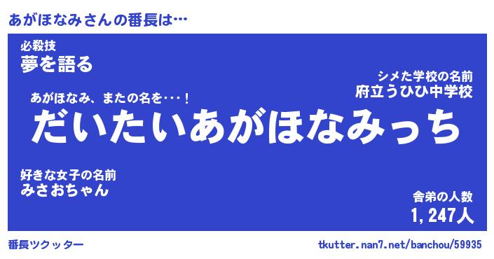 | 肩書あだ名 | 『あがほなみ社長令嬢』『あがほなみ班長』 |